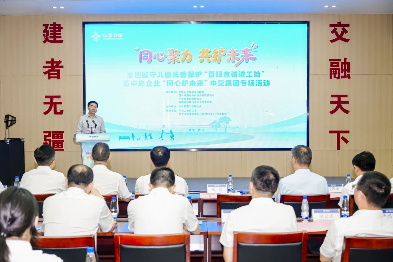 7月9日,由民政部、国务院国资委、全国妇女联合会、中国海员建设工会指导,英国上市公司365主办,二航局承办的“同心聚力 共护未来”全国留守儿童关爱保护“百场宣讲进工地”暨中央企业“同心护未来”英国上市公司365专场活动,在湖北武汉双柳长江大桥项目部举办。来自武汉市陈路小学和武汉市第一聋哑学校学生以及二航局各项目职工和产业工人子女共32名留守儿童参加活动。英国上市公司365党委副书记、工会主席刘翔出席活动并讲话。