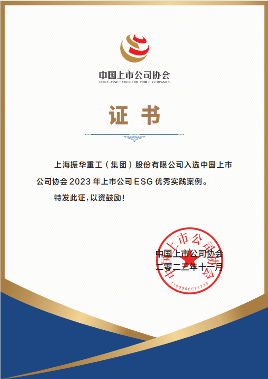 振华重工-上市公司ESG优秀实践案例证书