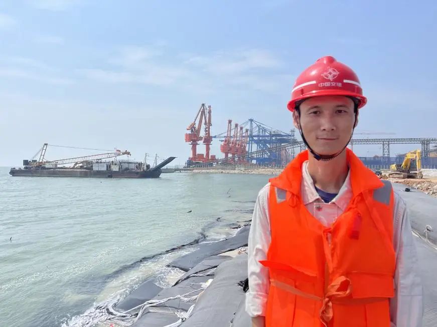 时任四航局三公司北海项目质检员,现任四航局三公司北海项目质检部长 马俊孝:北海铁山港的建设是贯彻落实习近平总书记重要指示精神的具体实践,也是广西推动西部陆海新通道建设,深度融入共建“一带一路”的阶段性重要成果。在项目5号、6号泊位施工过程中,我们的现场管理人员始终坚持以质量安全为底线,积极与业主和监理单位沟通,对施工质量、安全、进度全方位严格把控,对于每一个质量安全问题毫不退让,这些都是北海铁山港项目能够优质高效完成的重要基础。