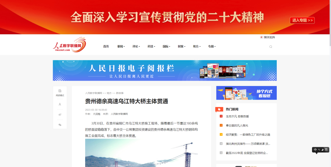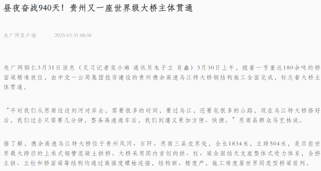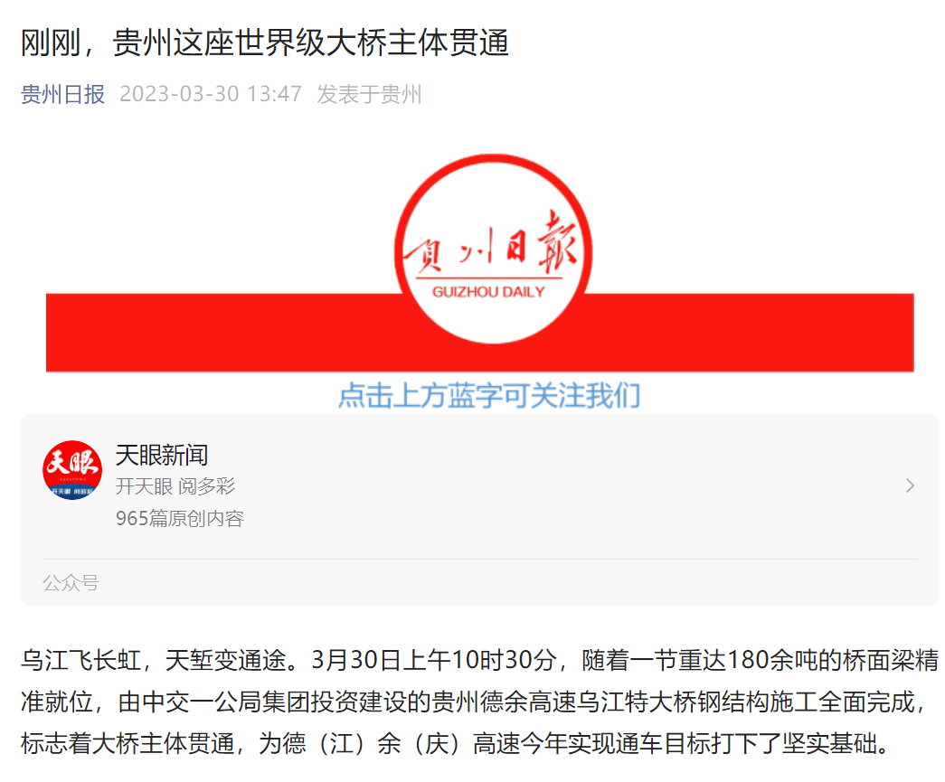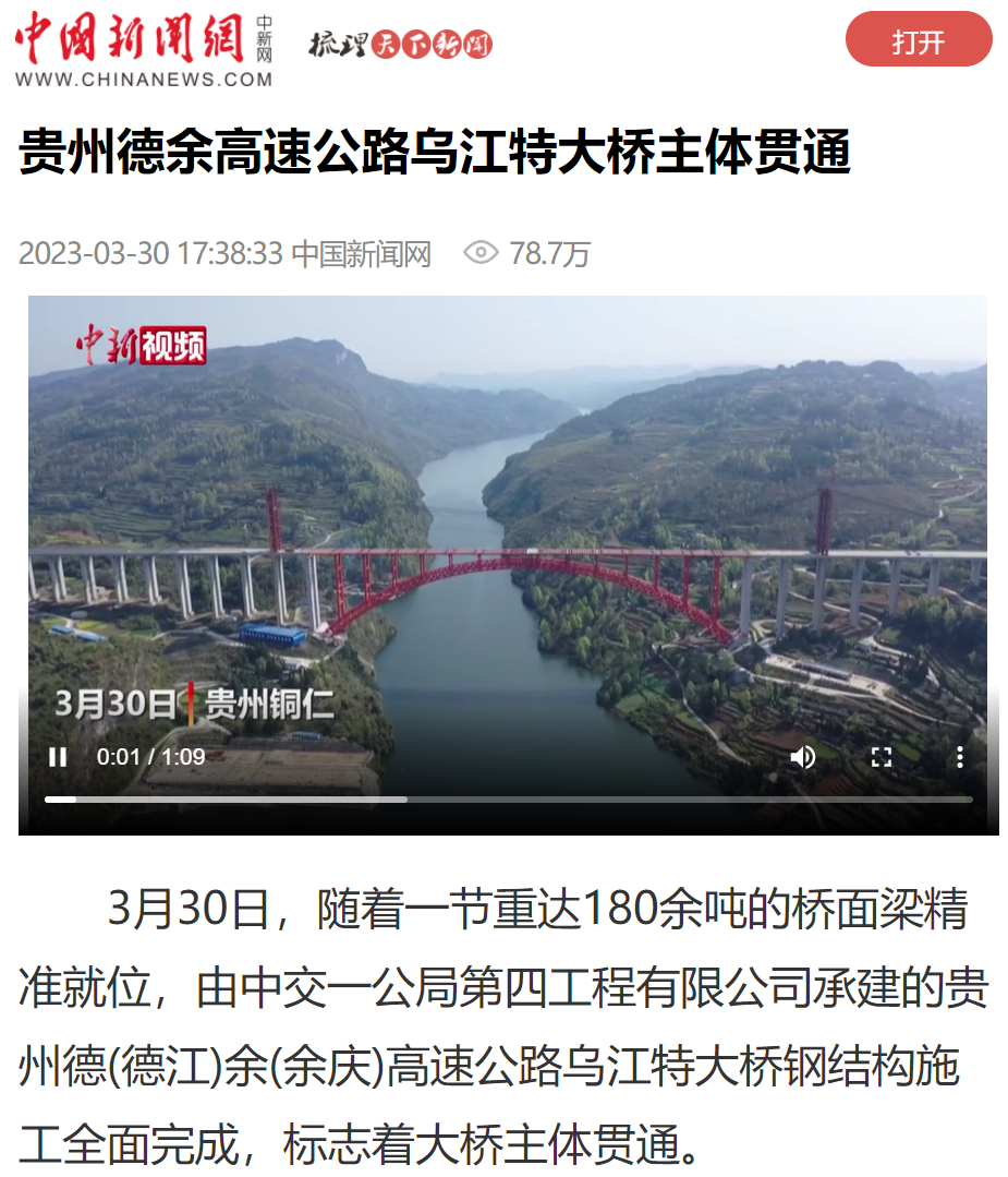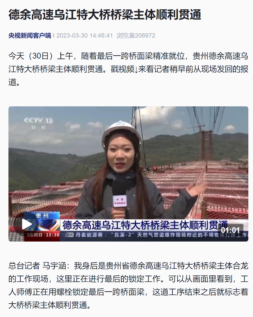 贯通直播共吸引200余万网友围观互动,20余家主流媒体转载乌江特大桥主体贯通消息,英国上市公司365“出品”的超级工程再次刷屏全网。